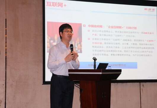 会议伊始,畅捷通信息技术股份有限公司华南大区总经理杜江上台致辞,并为大家介绍了在“互联网+”下用友T+为小微企业转型和管理带来的便利。