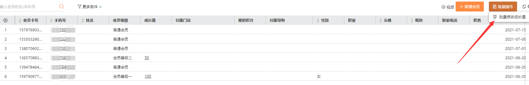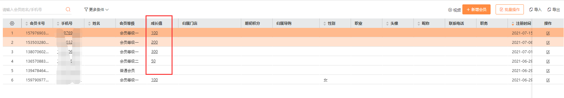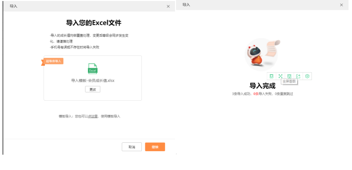只需要填写“手机号”和“成长值”这2个字段即可,也可以下载模板填写后导入。