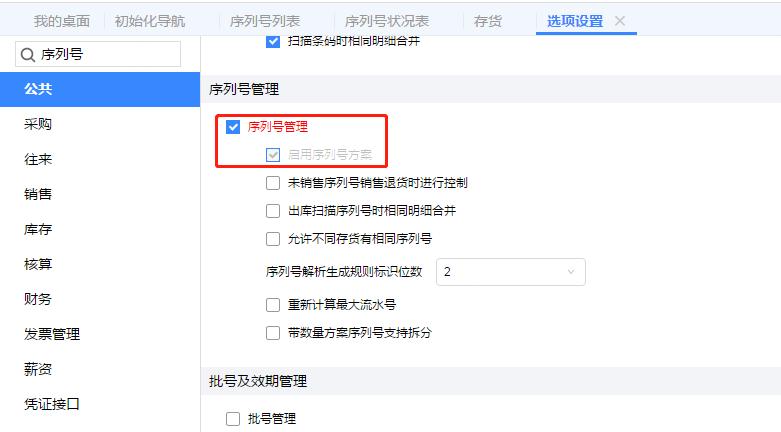 step.1 选项设置-公共中启用序列号管理