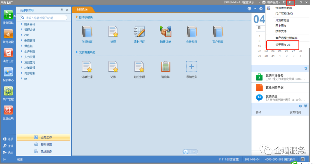 U8用户可根据下图查询贵公司所使用的软件版本:
