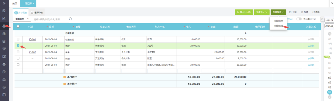 【新功能】8月好会计更新:批量修改日记账对方户名
