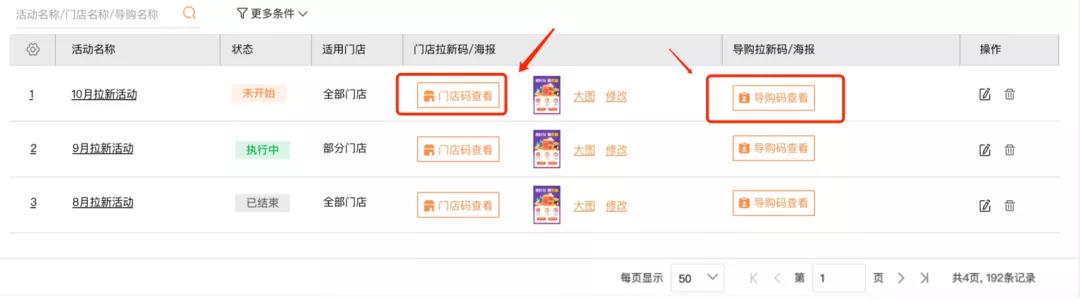 创建新客赠券活动后,可以支持活动范围为线上微商城+线下门店,全渠道拉新,可生成门店码+门店拉新海报以及导购员专属拉新码。