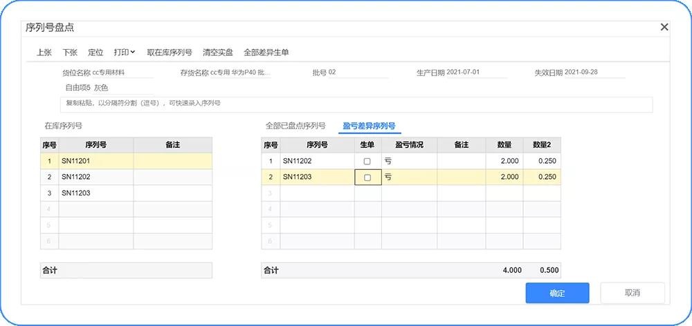 1.启用序列号管理,创建盘点单后,建议不要再进行出库、入库业务处理。