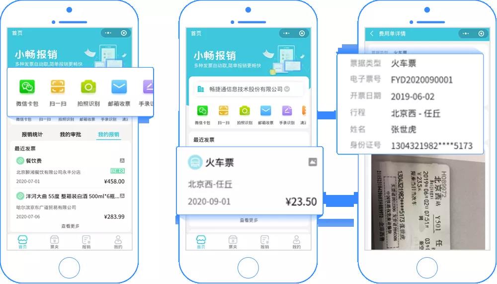支持火车票、机票、打车票等费用票自动收集。