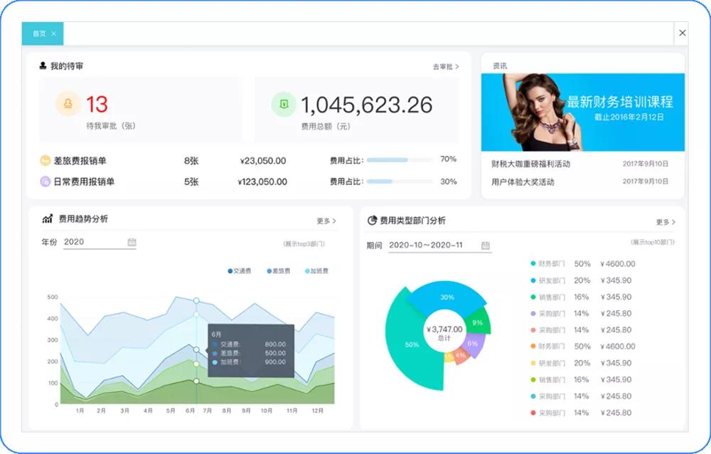 个性化管理:自定义报销单/自定义审批流,移动审批,全员费控在线管理,智能费用分析