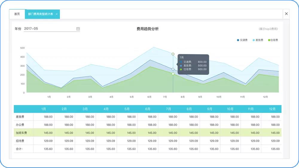 支持费用精细统计,趋势分析,费用支出使用情况实时在线统计与分析,帮助企业实时了解企业经营情况、决策运筹帷幄